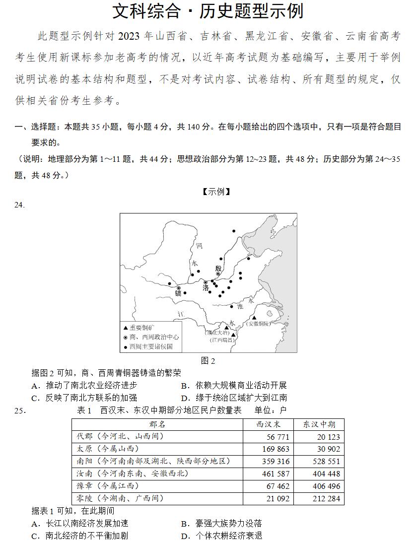 教育部发布2023年新课标老高考题型示例·文科综合·历史题型示例