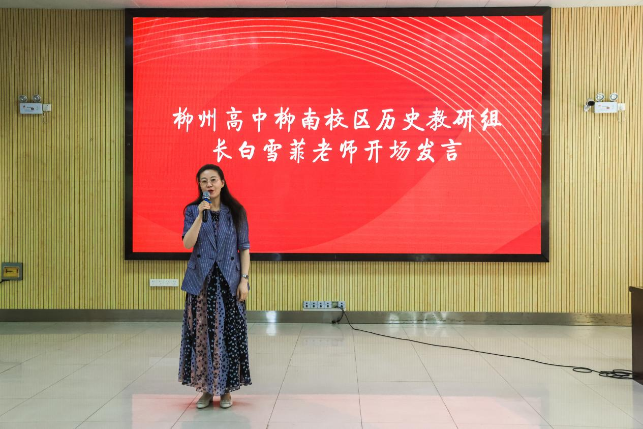 活动首先由柳州高中柳南校区历史教研组长白雪菲老师作开场发言。她对年级领导和学科基地的支持,以及同学们的积极参与表达了感谢。接着白老师向大家普及了“策展”的概念,并期望同学们能够借助‘策展’这一新颖的形式,进一步深化对历史的理解和认识。最后,她阐述了为何本次比赛选择从唯物史观的角度来解读历史文物,以及为何要求以个人形式参赛的原因。她指出,唯物史观作为一种科学的历史观和方法论,能够揭示人类社会历史发展的客观基础及其规律,是高中历史学科五大核心素养中的主导。采用唯物史观分析历史问题,可以更加直观地反映历史发展的客观规律。同时,个人形式的参赛方式有利于锻炼和提升参赛者的独立能力。